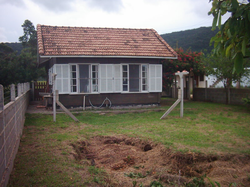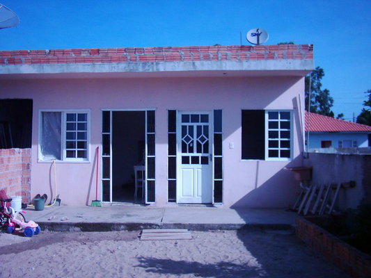 Casa de alvenaria 65 m², 1º piso inacabado com 01 dormitório, banheiro e sala com cozinha; 2º piso com 01 dormitório, banheiro, sala com cozinha e sacada. Edícula com banheiro e cozinha. Terreno com 374 m², sendo 11m de frente e contra frente e 34 m cada lateral. A 100 m do asfalto e ponto de ônibus, próximo ao comércio e ao Costão Golf.