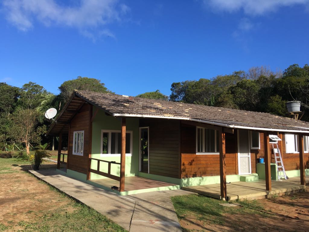 Lindo sobrado, ( madeira de angelim e alvenaria em tijolos a vista ) 3 dormitórios, sendo um destes uma suíte com sacada, 03 banheiros, 02 salas, ampla área com churrasqueira, sacada e garagem coberta para 02 carros, amplo jardim gramado e arborizado com diversas árvores frutíferas. Rua com trilha para a praia do Moçambique.